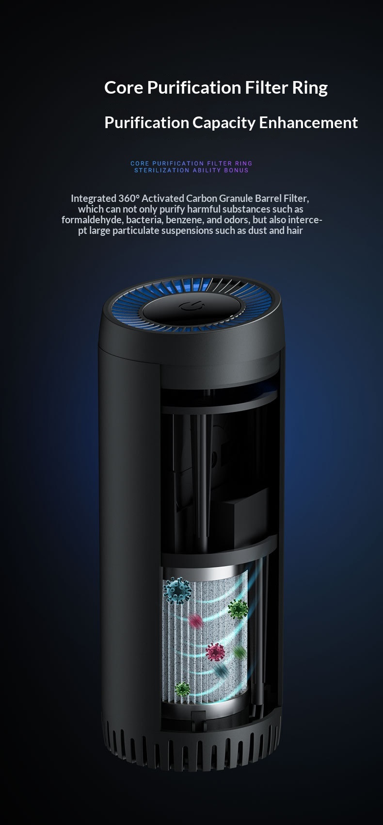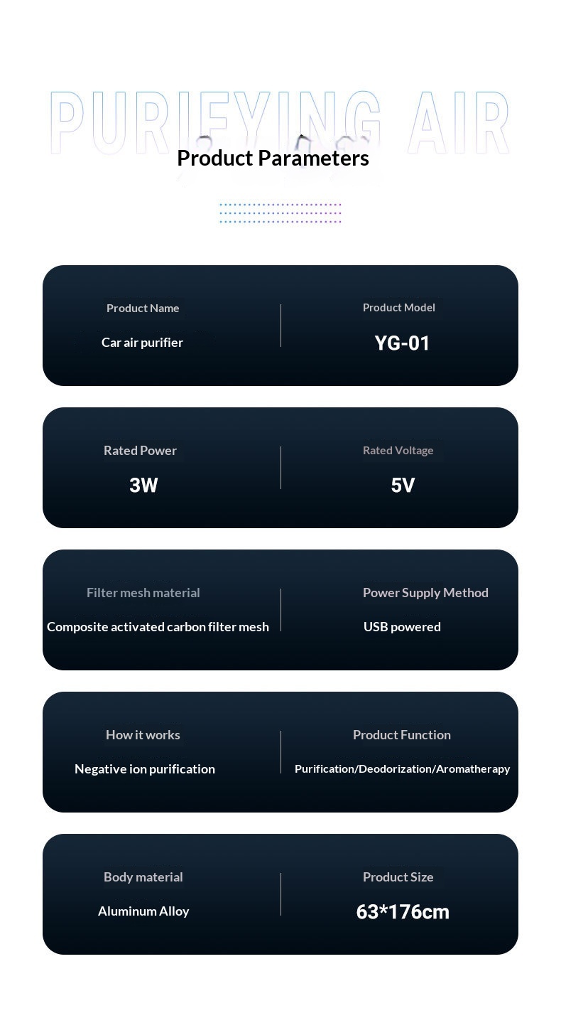 Small Portable Aluminum Alloy USB Car Air Purifier